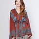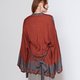 图腾灵感源自土耳其古老瓷砖上的莲花纹饰——东方神秘与几何秩序交织,让这件单品不只是服装,更像是一段异国诗篇披在身上。宽袖与绑带设计自由灵活,无论是绑起收腰或自然披挂,皆可依心情转换风格。