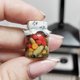 Canned tomatoes made of polymer clay. Cucumbers made of polymer clay. This is a realistic miniature for a dollhouse or collection. The composition is made of polymer clay, glass jar, UV resin filler.