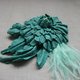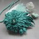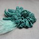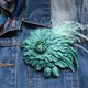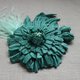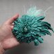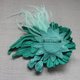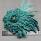 这款带有染色处理的祖母绿绒面革花朵胸针,配有蓬松的鸵鸟羽毛和两颗蓓蕾。