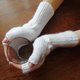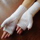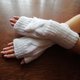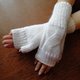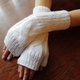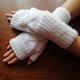我用织针编织的美丽、时尚、时尚和温暖的手套。我用弹性针织物弄清楚连指手套的顶部和底部。在外面我有一个美丽的浮雕图案。我系好拇指的解剖楔形。