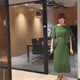 这款香云纱连身裙“遥远”的背后的黑色就是这片绿色绢丝香云纱的过泥面。
