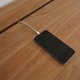 大型的收纳柜,柜体上方设计了上掀的小门,背板也引了电线进出孔,让延长线和充电线可收纳于其中,保持柜体上方的整齐摆设