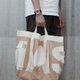 袋身一块布用折叠方式缝制,做出多个收纳间隔,保留原布边。