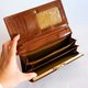 这款来自法国的复古长银包,以 croute de cuir veritable(真皮二层革)制成,质感光滑细腻,兼具复古风格与实用性。经典的对折设计,内部空间宽敞,提供多种收纳功能,方便分类整理。