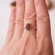 图中设计师的指围是国际围9号,这只宝石较薄,9号戒围戴起来略松。10号戒围比较刚好。