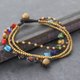 这是手工编织的手镯,用深棕色棉花打蜡的绳子与多色形状和尺寸的玻璃珠,黄铜珠和黄铜刺耳钟一起编织。 关闭使用黄铜钟 ♥手镯长7英寸 运输 :: 泰国航空邮件在付款后1-3天内发货。 通常需要7-21个工作日才能到达目的地。