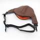 外层采用高耐用性的聚酯纤维,内里则为橘色的尼龙材质。眼部后方设有可拆卸的内袋。