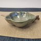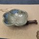 绿底带有蓝色斑点和流釉,沉稳内敛 ,除了餐桌上使用还可多用途创意使用 ,装墨汁当墨池用于书画也很好.