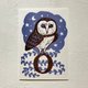 O is for Owl 手工版印明信片 猫头鹰 abc字母明信片