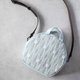 包包呈现圆润的半月形轮廓,上面微微搁着一个手柄,给人一种柔软的感觉。