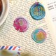 全手工制作金漆封蜡,背面含双面贴,设计独一无二,一组3片3种设计、方便使用。除了手帐本日常创作素材,也可以用在信函、贺卡、书签、画作等等。