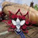 【材质及工艺】手工制作真丝扣条,,盘制成缠枝莲,装饰天然小米珍珠、古法琉璃和925银饰,最后搭配日本贵和胸针扣制作而成。