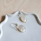 舞伎珍珠母贝纯银耳环 ✦ 白水晶的纯洁光辉、珍珠的庄重光泽、珍珠母贝的灵动光影,交融古典与现代的美感。上窄下圆的轮廓,宛如月光下的舞伎,光影间闪烁着绚烂柔美的姿态。
