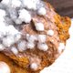 **◆ **石膏晶体晶面带有纵纹,晶体呈细晶粒状、块状,这种又称"雪花石膏",晶体很脆弱,易弯曲。