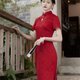 這是一款暗紋提花的旗袍暗