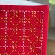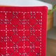 用白线在鲜红色布料上绣出格子图案,用蓝灰和黄线绣出斜纹图案。美丽的色彩组合使其成为引人注目的作品。