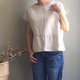 [山脉静静] 卡其色细条纹 抽皱法式袖小上衣 (45%棉、55%麻)(只有一件)
