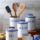 - 简约风格总是最百搭! 英国Rayware设计的这系列保存罐相当有质感,陶瓷制作,手感厚实,盖子处有密封o型环,上面有着明亮的简约文字,简单明了,一组三罐入,可以保存容易受潮的咖啡豆/茶叶/糖,相当实用喔!