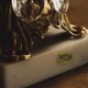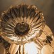 这件娇小又不失典雅的座台灯生产于60年代的意大利。灯的主体以浮雕黄铜铸造,挂上八颗棱镜,柔造了折射性效果。灯罩以玻璃打造,一半磨砂一半光面。一盏小巧的灯具,却绽放出刚柔共在的灯光效果。灯具带上一块平滑沉重的大理石底座。