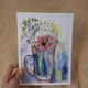 粉红色的花朵画。静物。非洲菊雏菊艺术。原创水彩画。小画。 这是一幅原创水彩画。 这幅画是用专业水彩画在艺术纸上的。 它可以用作装饰墙壁的艺术品。 出售的艺术品没有装框。 纸张尺寸为 24 x18 厘米(7х9.5 寸)。 安全包装以提供保护。