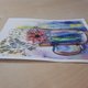 原创水彩画。粉红色的花朵画。 原创绘画可以装饰您的家或成为礼物。 纸,尺寸 24 x 18 厘米。 安全包装以提供保护。