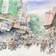 以钢笔直接打稿再以水彩上色,笔调轻松清新典雅,描在旅行中所见美好景色。
