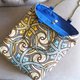 这款链条托特包采用色彩缤纷的非洲布料制成。