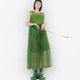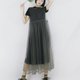 手工網紗高腰連衣裙 長版層次穿搭 透視紗裙