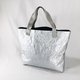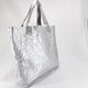 表面采用经过褶皱处理的银色特殊 Tyvek 材质,内衬则使用深海军蓝色的棉布。