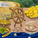 - 窗台上,玫瑰缠绕成柱子,花瓣吸引着蜂鸟和蜜蜂,营造出大自然恩惠的生动芭蕾舞。下面的桌子上放着金色的财宝——圣杯、蜂蜜、硬币和装饰着幸运四叶草的马蹄铁——所有这些都是繁荣和好运的象征。附近有一个指南针,暗示着未知路径和新冒险的可能性。