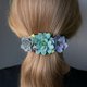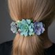 引人注目的发夹,缀饰着三株饱满的景天属多肉植物,以及数枝的玉串和胧月。