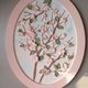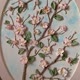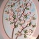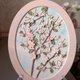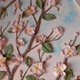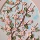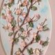 用樱花绘画 一幅绘有茂盛粉红色樱花的画。盛开的樱花画。这些花是用装饰膏和调色刀以体积绘画的技术制成的。因此花朵有了体积,画面获得了3D效果。