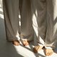 而横向的条纹袖口与裤口设计,点缀直面的主线条,时髦的细节就藏在这里。