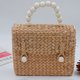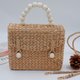 水葫芦编织袋 尺寸 5x6.5 英寸 + 叶子周围饰有珍珠流苏 + 抽绳衬里 + 木珠把手