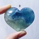 设计师严选萤石家族中最**稀有**之**蓝萤石**,磨制**心型**摆件(寓意**心想事成、心慈好善、心坚石穿**),每件蓝绿色彩明亮、纹理独一无二,值得收藏。
