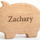 - A personalized piggy bank made of oak is a wonderful gift that will help a child to raise money for a dream. Made of natural materials, it will be safe for the baby to use it.