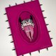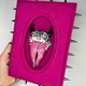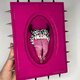 墙壁艺术。粉红色木质框架,画着牛唇图案。