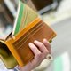 "Purple wallet that is familiar to plump hands"