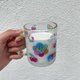 印有彩色插画的透明玻璃马克杯。倒入牛奶后图案会变得超可爱!也推荐当作笔筒使用喔。