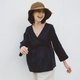 Wrap top featuring a V-neck, adjustable at waist inside and outside.