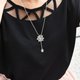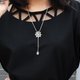 美丽的网是蜘蛛的家,借由链条穿过蜘蛛网,像蜘蛛从网上垂吊下来的感觉,来设计出Y字链的项链。
