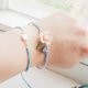 配戴:樱花的底盘就是扣头,先把延长绳拉开,打开扣头,戴好后再拉延长绳调整松紧度即可