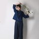 蓝染蕾丝层叠花边衬衫 - 女装衬衫 - 棉.麻 蓝色