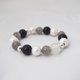 黑曜石、灰月光石、天然白色淡水珍珠、s925纯银、弹力线
