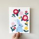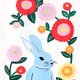 I painted a blue rabbit and flower using acrylic gouache.