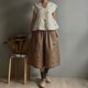 山居岁月/设计师插画印花布/二重纱纯棉茧型中长宽裤裙100%cotton