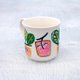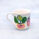 It is a mug of rose pink, a pattern that deformed persimmon humorously and designed it.