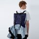 - 这款深蓝色背包非常轻,自重只有400g。 包身防泼水,并有保护层方便你带笔电ipad出门。 附有雨伞袋,再不需要担心湿淋淋的雨伞影响被背包内物品。 包身特别设计,可挂外套甚至瑜伽垫解放双手。 透过改变肩带位置,分别可以手提,肩背,和后背。