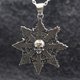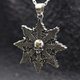 混沌邪神九芒星.骷髅.变幻之槌战争坠饰。尺寸:高(坠饰本身,不含挂环)/宽:5.2 厘米,厚度:0.3 厘米(骷髅处较厚) 重量:37 克。不含项链。可依订制需求调整尺寸。