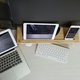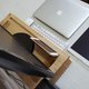 利用榫的原理做改良,透过角度的设计让产品位置自然呈现,不需要任何螺丝就能够固定,高度符合人体工学让视野平行腰杆挺直,沟槽设计能够摆放手机会是平板,底下空间能够摆放键盘。